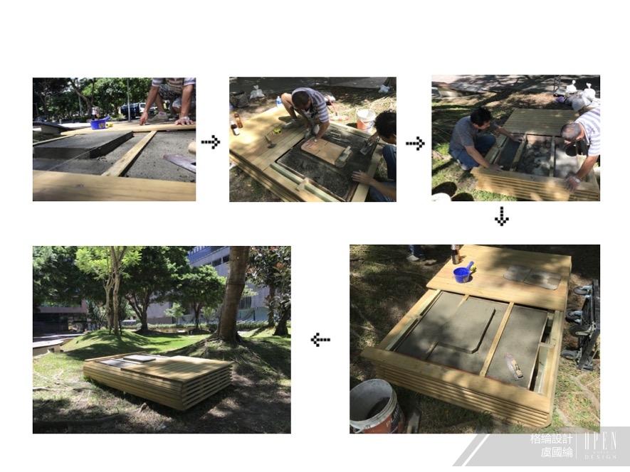 有了堅實的概念基礎,虞總監接著大方分享3D模擬及施作圖示,回顧現場施工照片,仔細說明拼裝書本基座及裝置馬桶的完整過程。將生活中最私密的空間想像搬移至戶外,一方面撞擊出「隱私」與「公共」的思辨,另外亦將如廁與閱讀時刻中,皆沉浸於個人世界的心理狀態巧妙結合,顯露總監身為空間設計者的換位思考。